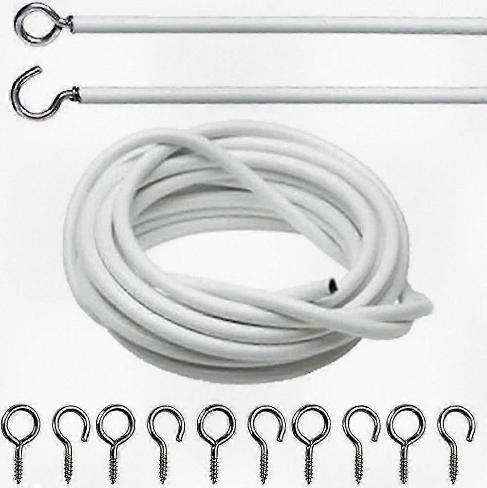White Net Curtain Wire Cord Cable with 8 Hooks & 8 Eyes for Window Dressing (3 Meter Length)