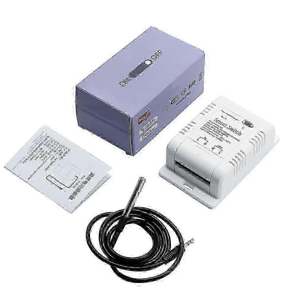Description: Input voltage: AC 85-250V Input current: Max 16A Max. Power: 3000W(16A) Wireless Standard: 2.4GHz, 802.11 b/g/n Security Mechanism: WPA-PSK/WPA2-PSK Control mode: Mobile APP Tuya smart / Smart Life Platform: for Android, iOS Gang: 1 Support temperature sensor: DS18B20. Enclosure Material: Fire-retardant ABS V0 Operating Temperature: 0C-40C Smart Switch Size: 94 x 57 x 32 (mm) DS18B20 Sensor Specifications: Type: Waterproof temperature sensor Probe: Stainless steel temperature probe Temperature Measuring Range: -55-and125 Operating Voltage: 3.0-5.5V Weight: 26g Length: 1m Specifications: x App Support: Free iOS and for Android mobile App Tuya Smart / Smart Life. x Sync Status: Real-time device status provided to App. x Real-time monitor: Monitor real-time temperature. Real-time power monitoring. x Remote ON/OFF: Turn electrical devices on/off from anywhere, with high accuracy temperature waterproof DS18B20 sensor. x Share Control: Control your smart home together with your family. x Timing: Supports 8 enabled countdown/single/repeat timing tasks to turn on/off at specified time. x Auto Mode: Set Auto mode to turn on/off at a specified temp. range. x Manual Mode: Set manual mode to turn on/off immediately. x Trigger Smart Scene: The temp. value works as smart scene trigger conditions to trigger on/off other tuya smart devices. x Voice Control: Compatible with "Amazon" Alexa, for Google Home, for Google Nest. x Waterproof temperature sensor with stainless steel temperature probe, high accuracy, wide usage in daily life. Package Included: 1 x Smart Switch 1 x Sensor Note: Due to the light and screen setting difference, the item's color may be slightly different from the pictures. Please allow slight dimension difference due to different manual measurement.