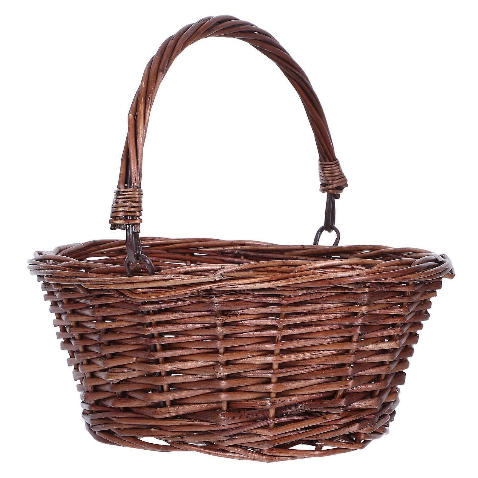 Willow Basket With Handles For Fruit Transport During Outdoor Activities And Picnics In Coffee Color With Elegant Shape 1Set