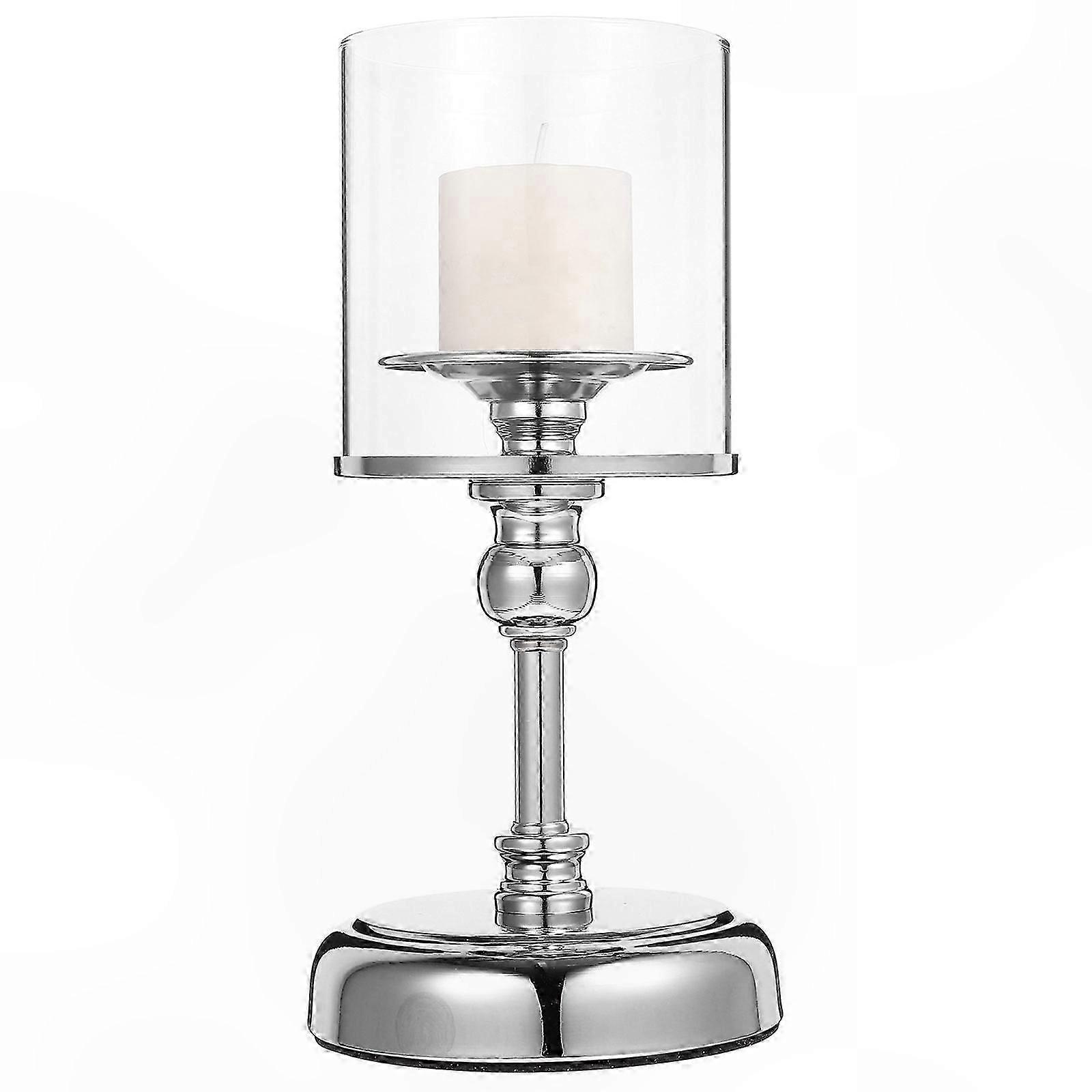 Windproof Tea Light Candle Stand For Party Occasion With Glass Tube In Stylish Silver Color 1Set