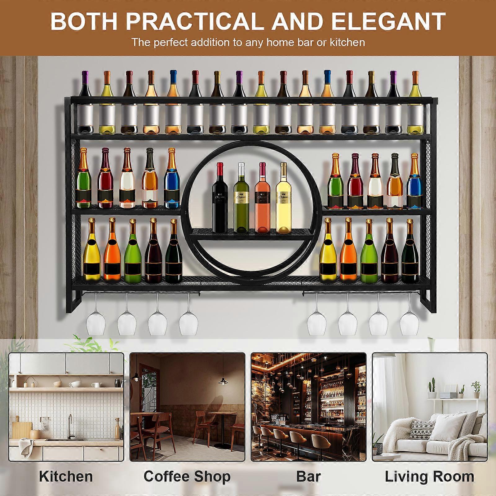 Wine Storage Rack Wall-Mounted Bar Liquor Bottle Display Shelf Large Capacity Floating Wall Wine Bracket For Home Kitchen