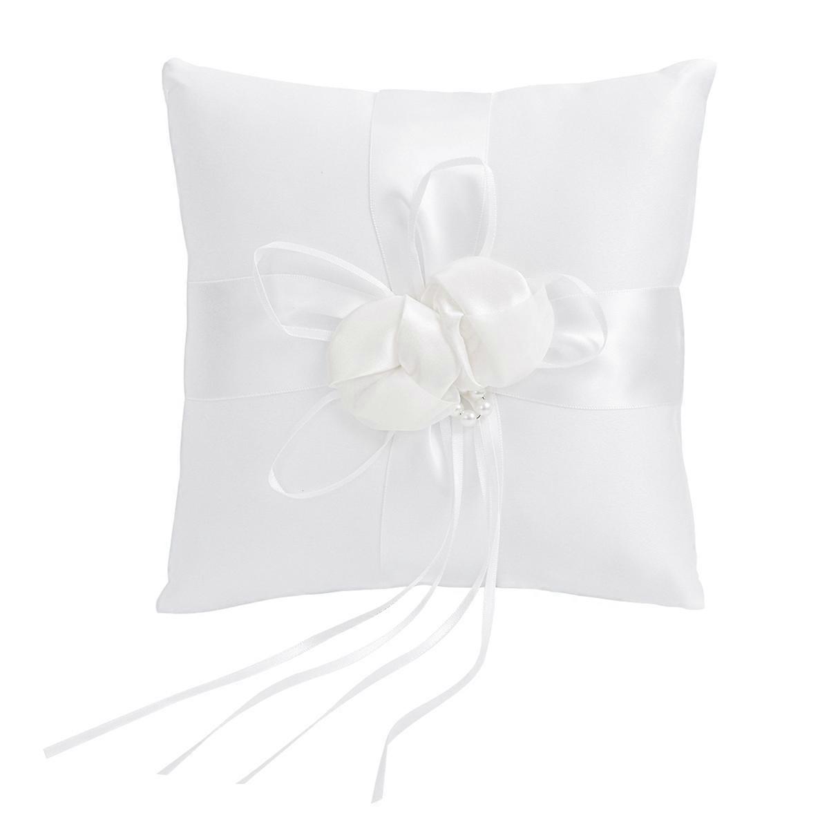 WINOMO 20x20cm Lovely Flower Buds & Faux Pearls Decor Bridal Wedding Ceramony Pocket Ring Pillow Cushion Bearer with Ribbons (White)
