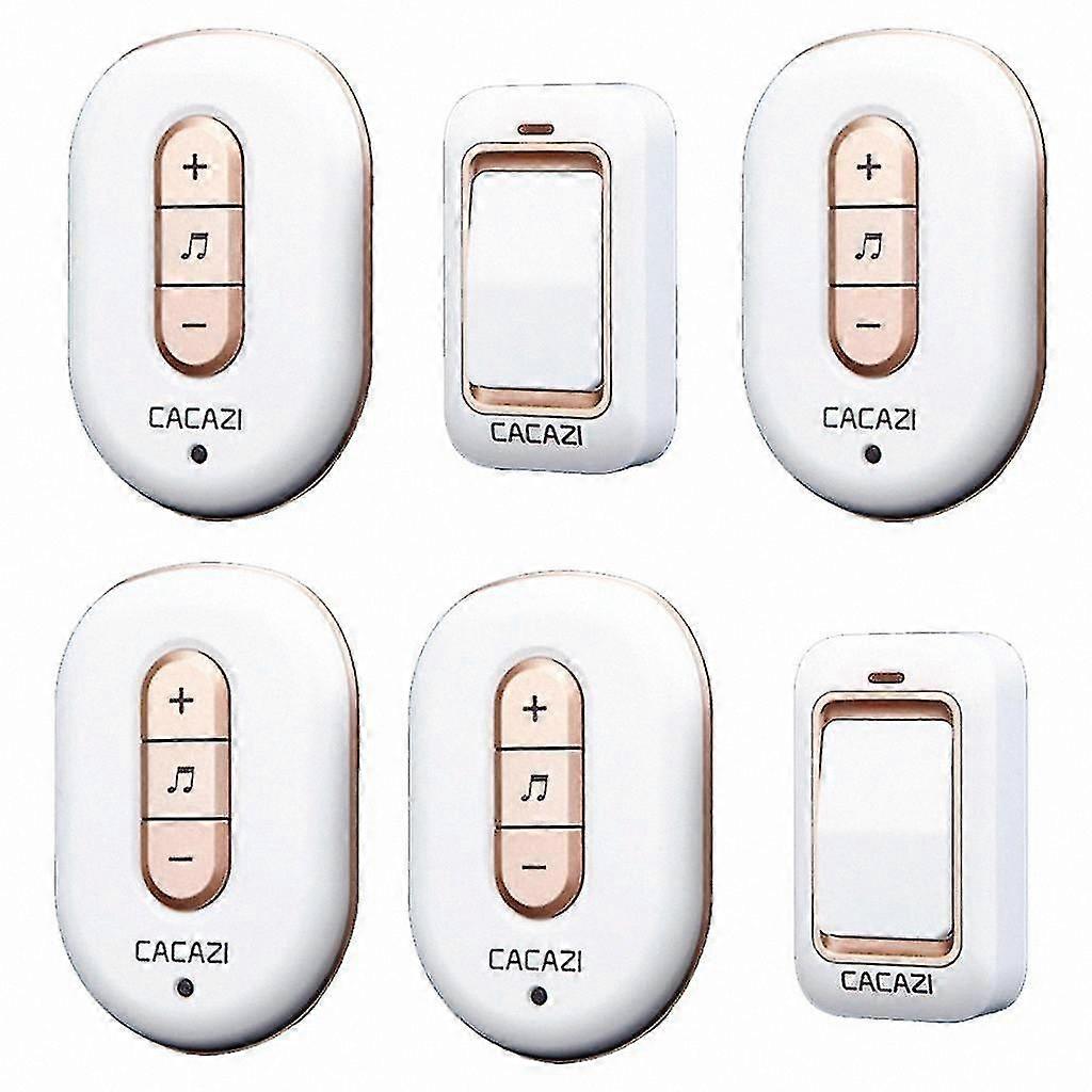 - This is a unique wireless doorbell; the key difference from other plug-in doorbells is the push-button self-generating power technology, requiring no battery or wiringpower is generated automatically when the button is pressed. - Operates up to approximately 200 meters in open areas; the push-button transmitter is IP44 rated for water resistance, suitable for outdoor use. - Features 48 selectable melodies and 6 adjustable volume levels. - Includes an LED indicator; supports adding extra transmitters or receivers to meet your needs, ensuring the chime can be heard throughout the home to avoid missing visitors. - Easy to install with no wires or drilling required; simply mount the transmitter outdoors and plug the receiver indoors for convenient home security. Specification: Material: ABS Plastic Transmitter: Approx. 75x42x22mm / 2.95x1.65x0.87 inch Receiver: Approx. 90x60x30mm / 3.54x2.36x1.18 inch Working Distance: 200m Voltage: AC 110V220V Plug Type: US Package Includes: 1 Set Wireless Doorbell Note: 1. Due to manual measurement, slight variations in color and size may occur. 2. Keep both transmitter and receiver in sheltered locations to avoid exposure to water and direct sunlight. 3. Clean the transmitter regularly with a damp cloth to prevent dirt buildup that may obstruct function. 4. Press the button firmly to ensure sufficient power generation.