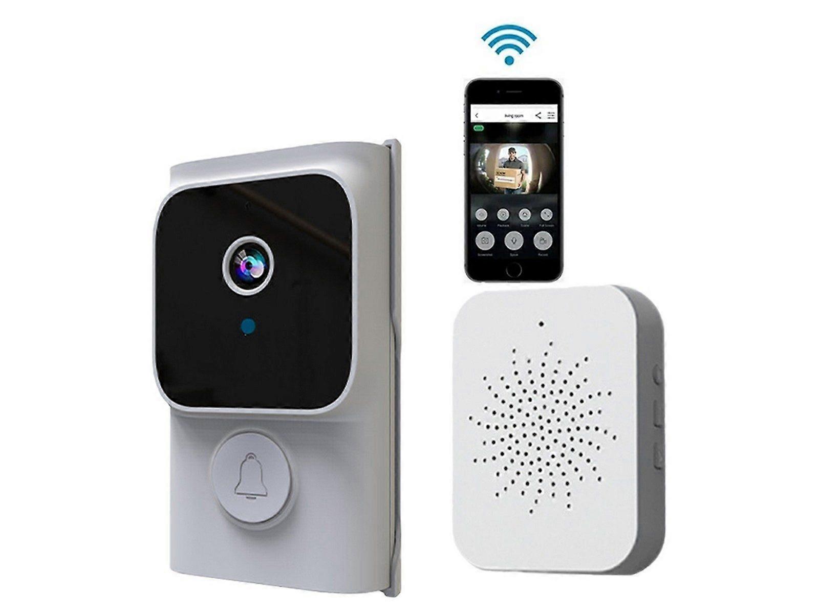 Type: Wireless smart video doorbell, Wireless smart Wi-Fi video doorbell, Wireless video doorbell, Doorbell, Infrared doorbell Note: Power adapter not included! Description: With easy installation and hassle-free operation, our wireless smart video doorbell provides monitoring and alerts, allowing you to enjoy the ultimate in security and peace of mind. Features: Achieve real-time video and two-way voice communication. Supports remote preview via a mobile app, keeping you informed of front door activity. Equipped with a 75 degree wide-angle lens for a clearer field of view. Can quickly capture visitor images and save records to the cloud. Has infrared night vision that automatically switches between day and night modes, allowing clear visibility of nighttime visitors. Built-in high-definition speaker and honeycomb-designed microphone for clear voice communication. Includes 20 selectable melodies, with freely adjustable volume. Specifications: Material: Plastic Color: White Product Size(LxWxH): Doorbell: 9.1 x 5.25 x 2.6 cm Ding Dong Machine: 5.5 x 4.3 x 2.5 cm Doorbell Battery Capacity: 800mAh Polymer Battery Voltage: 5V Package Contents: 1 x Doorbell 1 x Ding Dong Machine 1 x USB Cable 1 x Manual Please note: Due to manual measurement, there might be a tolerance in the product size. Due to the lighting effects and shooting angles, the color of the item and that shown in the picture might have a nuance.