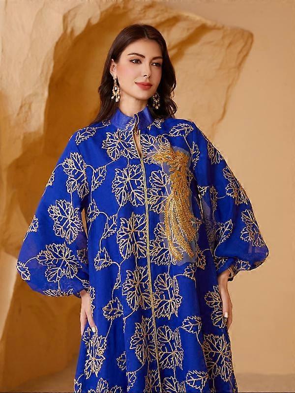 Women's Leaf Pattern Sequins Belted Dress Elegant Long
