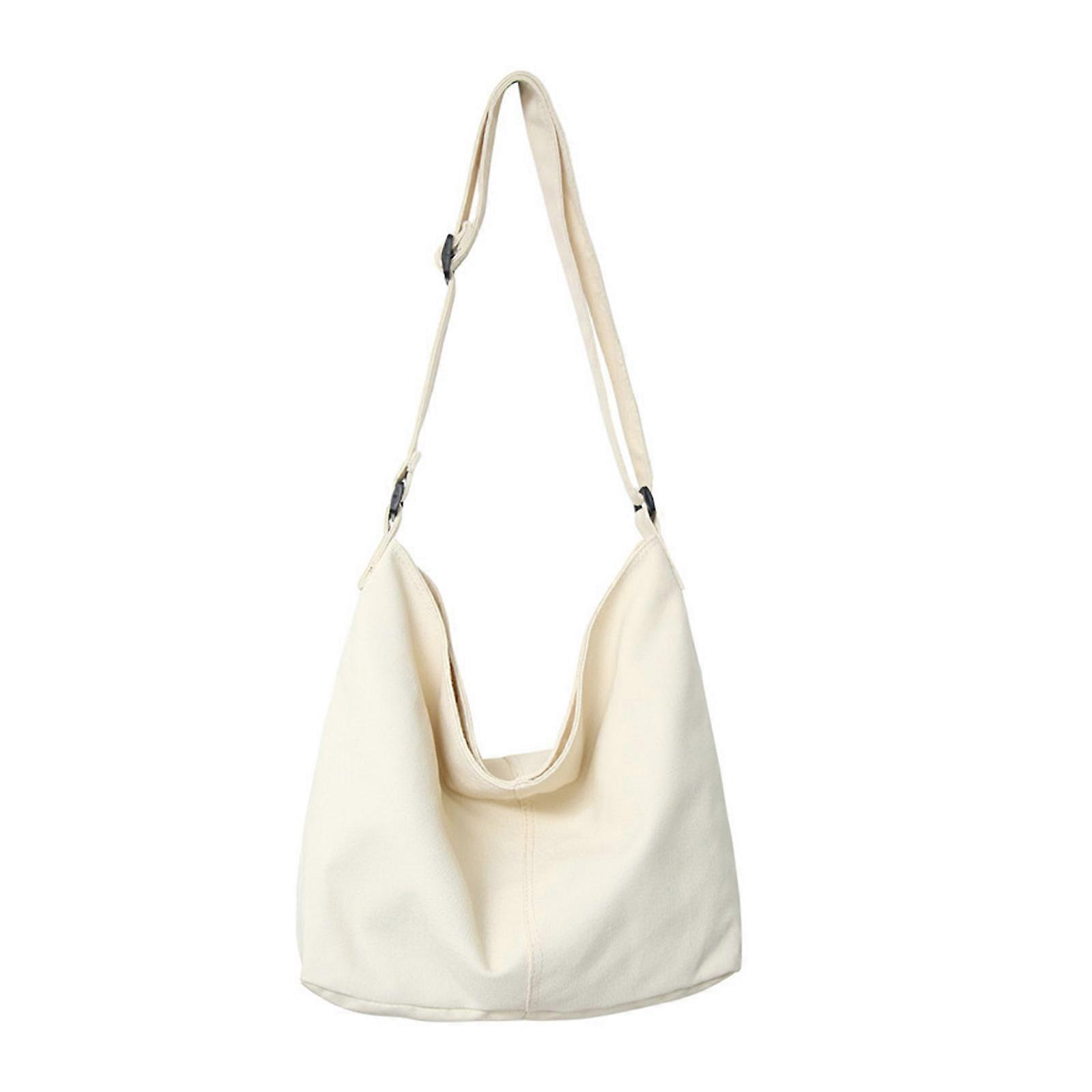 Womens Solid Color Shoulder Bag Multi-function Canvas Bag Large Capacity Crossbody Bag Japanese Style Messenger Bag Ins White