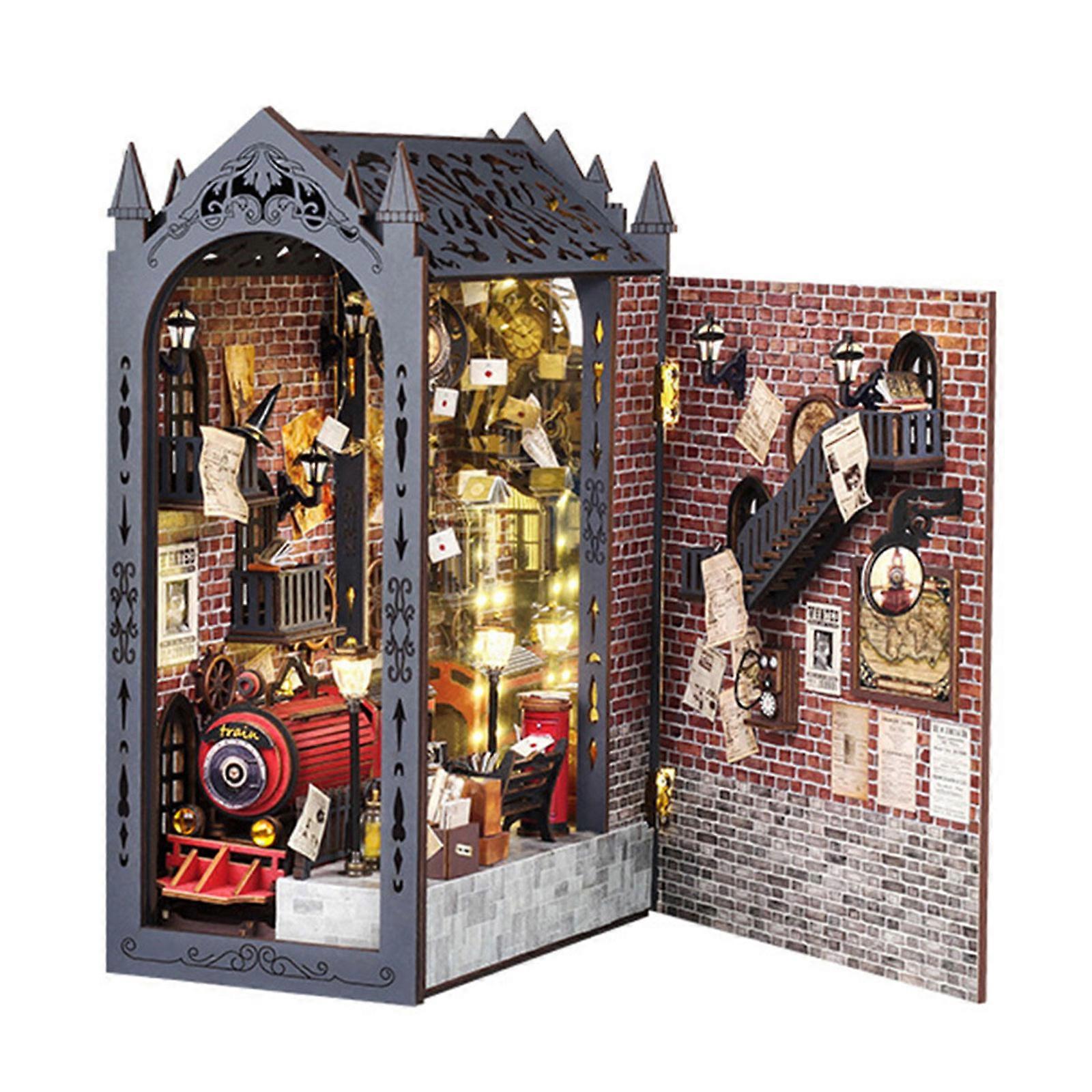 Wood Craft Set Miniature Architecture Book Insert With LED Light Bookshelf Materials For Adults And Kids Multicolor