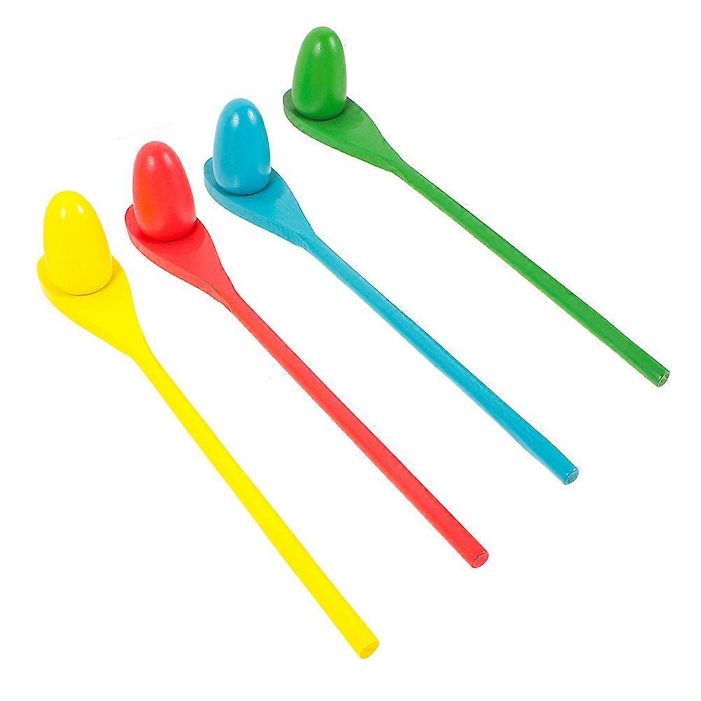 Wood Egg and Spoon Race Game Set for Kids 4 Sets Assorted Color Balance Relay Games with Ball Ideal
