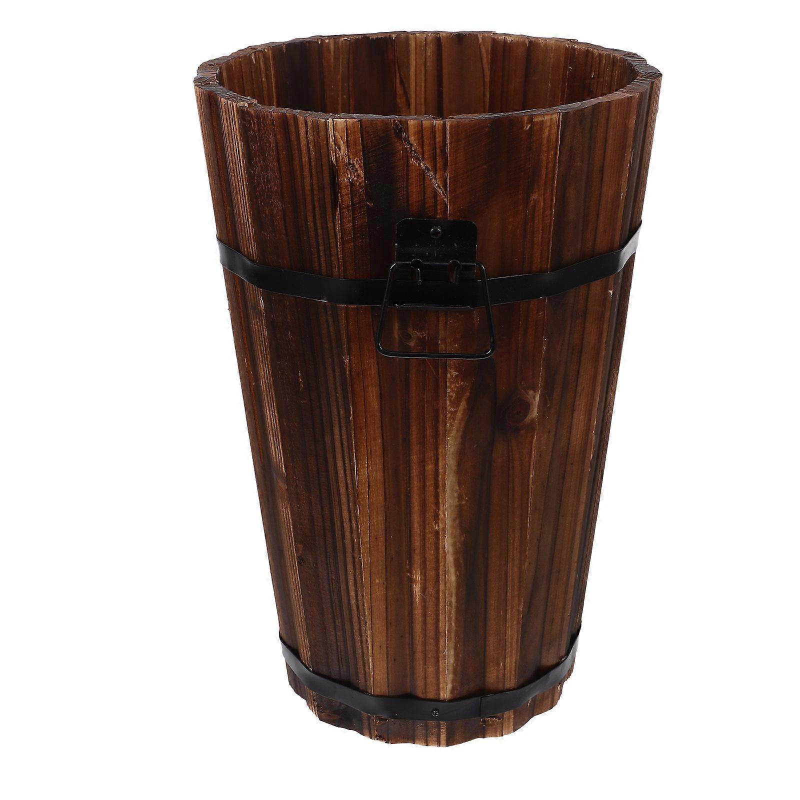 Wood Trash Can for Storage Rustic Trash Bin with Handle Coffee Color