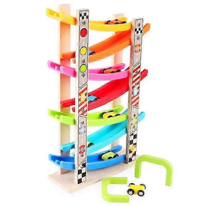 Wooden 7-layer Ramp Race Track with 8 Mini Inertia Cars for Baby Toddler Motor Skill Development