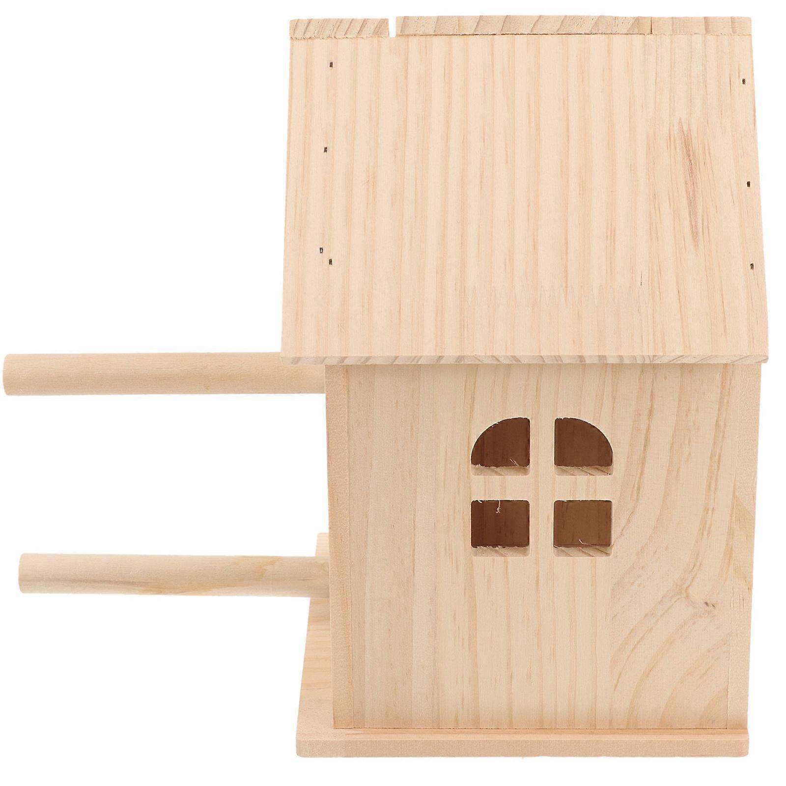 Wooden Bird House for Parakeet Nesting and Breeding with Khaki Color and Special Feeding Design 6.5x6.5x12 inches