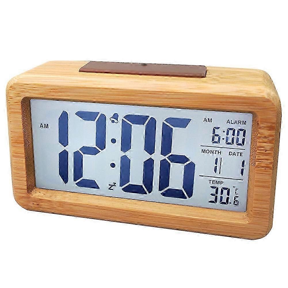 Wooden Digital Clock with Night Light, Snooze, Date Display and Adjustable Temperature Function, Solid Wood Shell Design