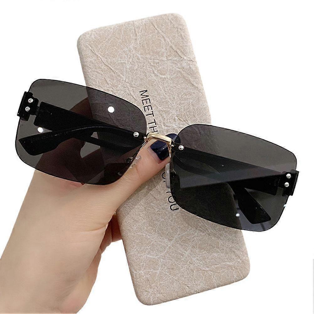 Woodgrain Rimless Tint Rectangular Hip Hop Stylish Sunglasses