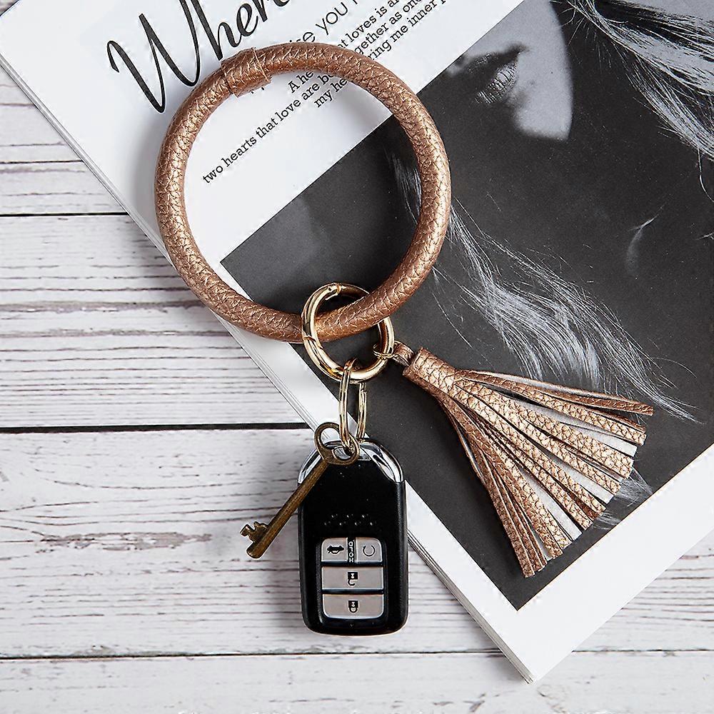 Wristlet Key Chain Bracelet Bangle Round Leopard Tassel Key Ring Rainbow Pattern