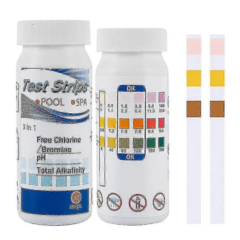 3 in 1 test stripsThe pool test strips can test free chlorine or bromine, pH, total alkalinity, fast and accurate test. Chlorine, test range 0-1-3-5-10 PH, test range 6.8-7.2-7.4-7.6-8.0-8.4 Alkalinity , The test range is 0-40-80-120-180-240. Easy to UseJust immerse a test strip in water about 2 seconds, take it out and hold itlevel for about 15 seconds, and then check the result with the color card on the bottle. Easy to storeTwo Plastic bottles of our test strips include 100 pool test strips and seal well with 5 individual moisture-proof packages to ensure carryout and long-term storage. Water Health TestIt is suggested to test at both ends of the pool twice a week to obtain the best results, so that you can know whether the pool water spa hot tub is in a healthy and clean state. Wide ApplicationThis water test strip is suitable for swimming pool, hot tub, aquarium, sewage, tap water, drinking water, an Note: Due to the light and screen setting difference, the item's color may be slightly different from the pictures. Please allow slight dimension difference due to different manual measurement.