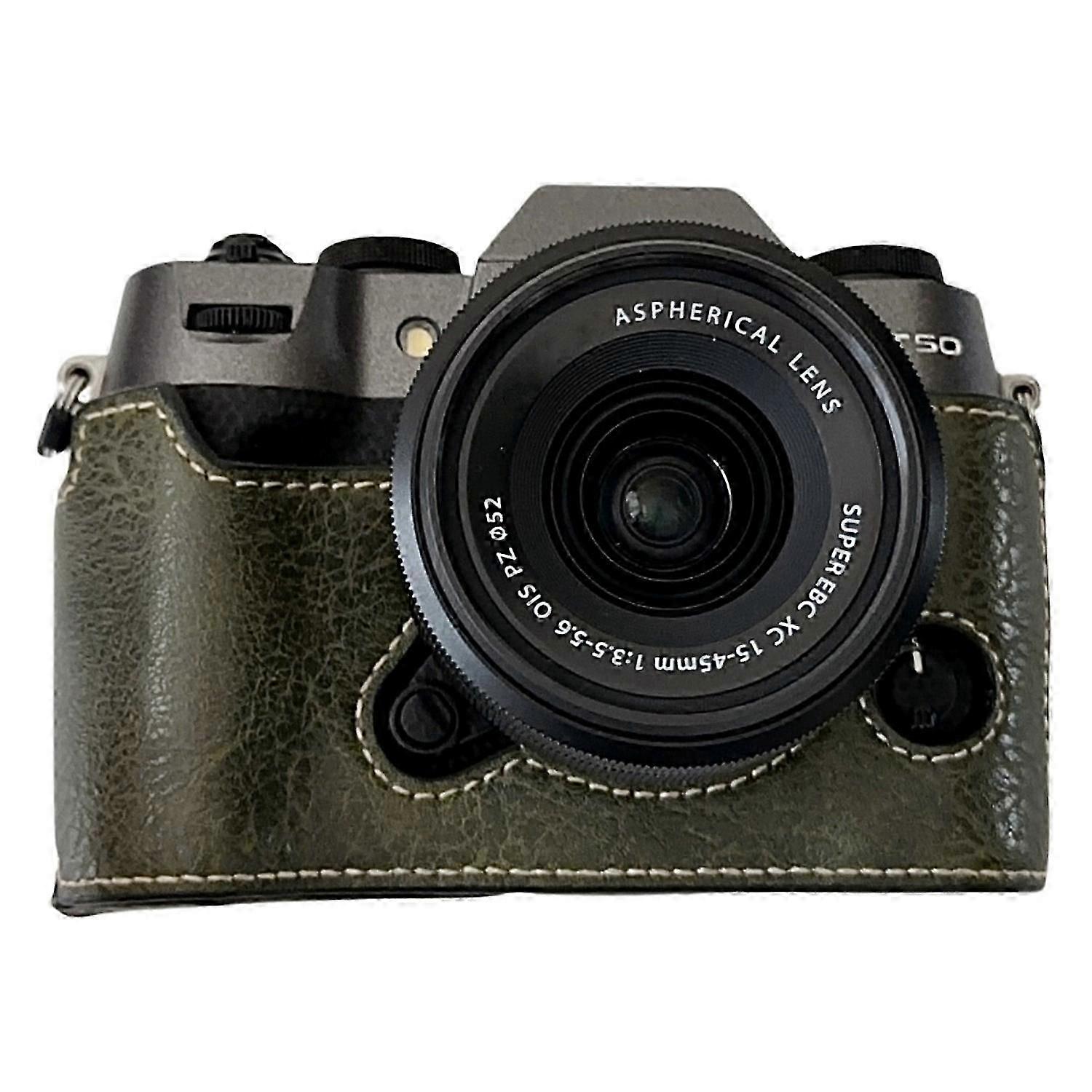 For Fujifilm X-T50 Buffalo Texture PU Leather Bottom Case Half Body Camera Cover with Battery
