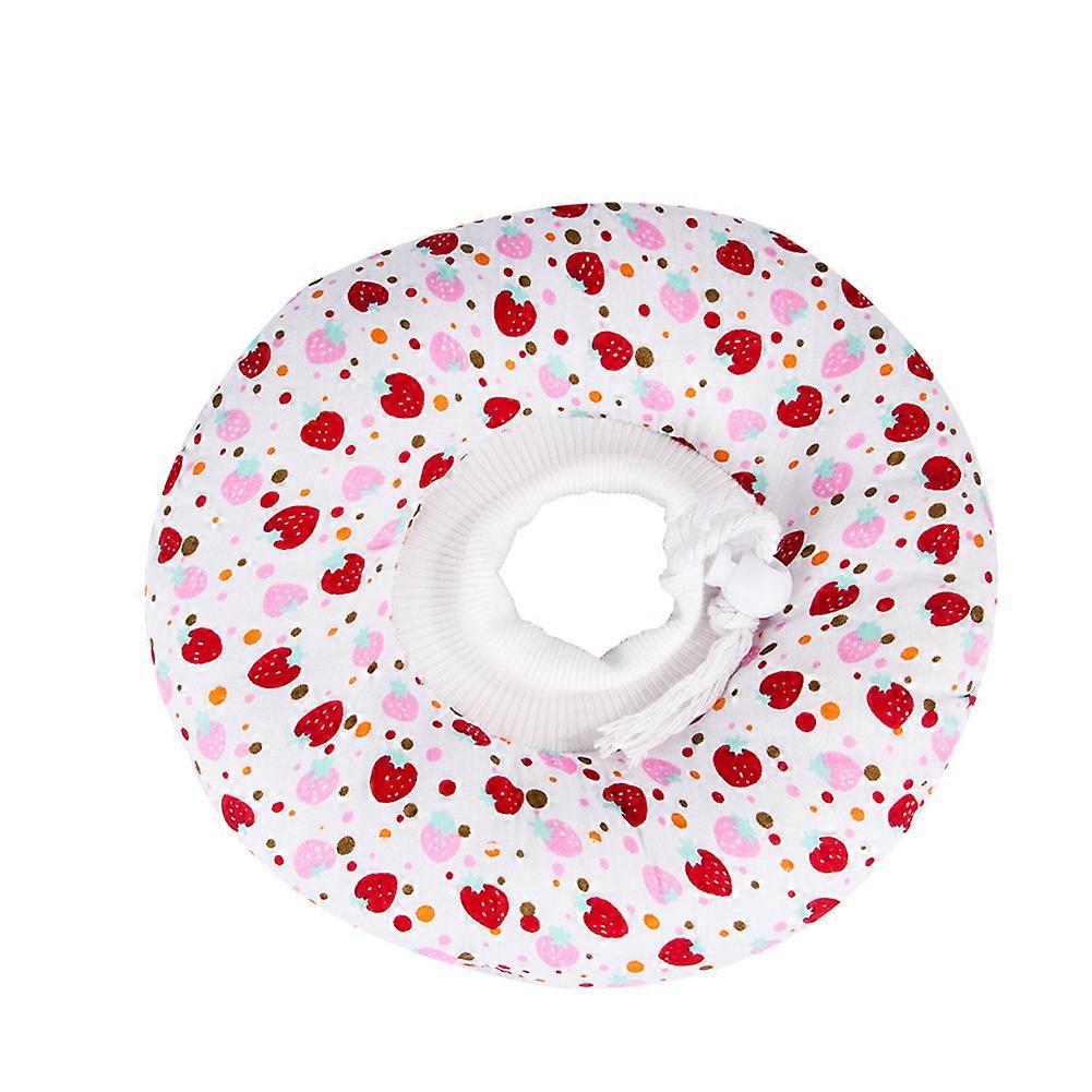 Pet Cat Soft Ring Collar Cover Anti bite Anti grab Adjustable Dog Neck Protector(XS Strawberry)