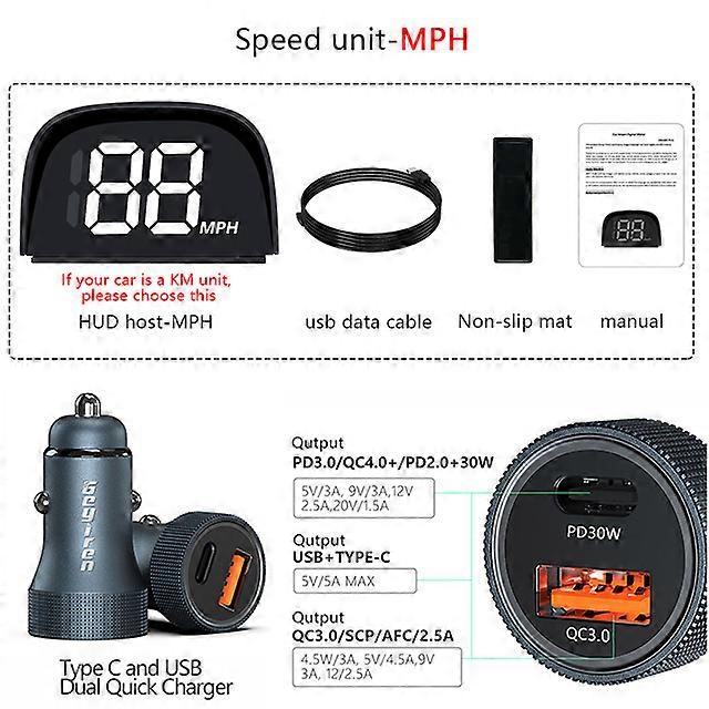 Y01 Digital Big Font Car LCD HUD GPS Head Up Display Slope meterSpeed Alarm Plug and Play KM/H MPH of All Cars