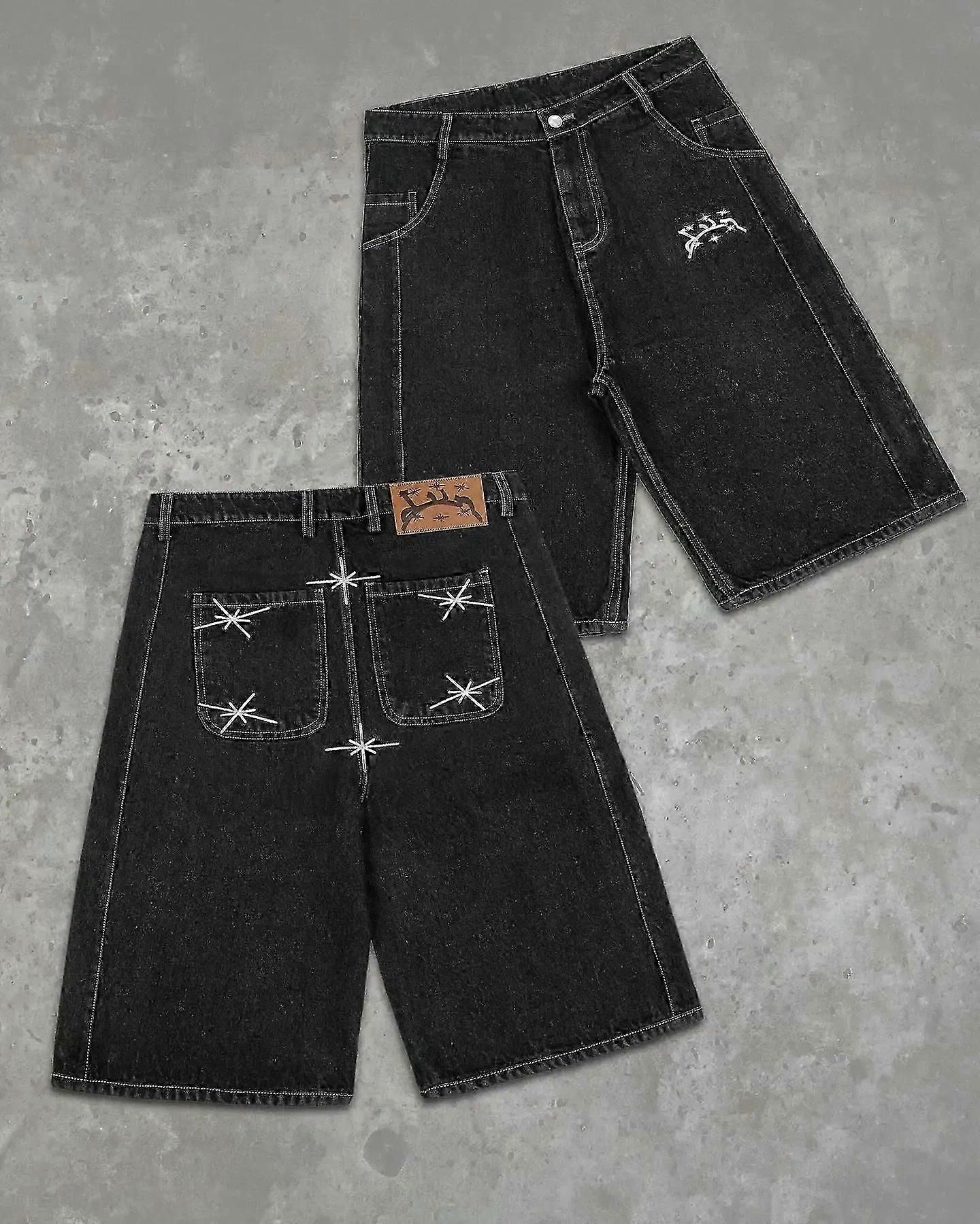 Y2K Retro Hip Hop Graphic Embroidery Baggy Denim Shorts for Men & Women