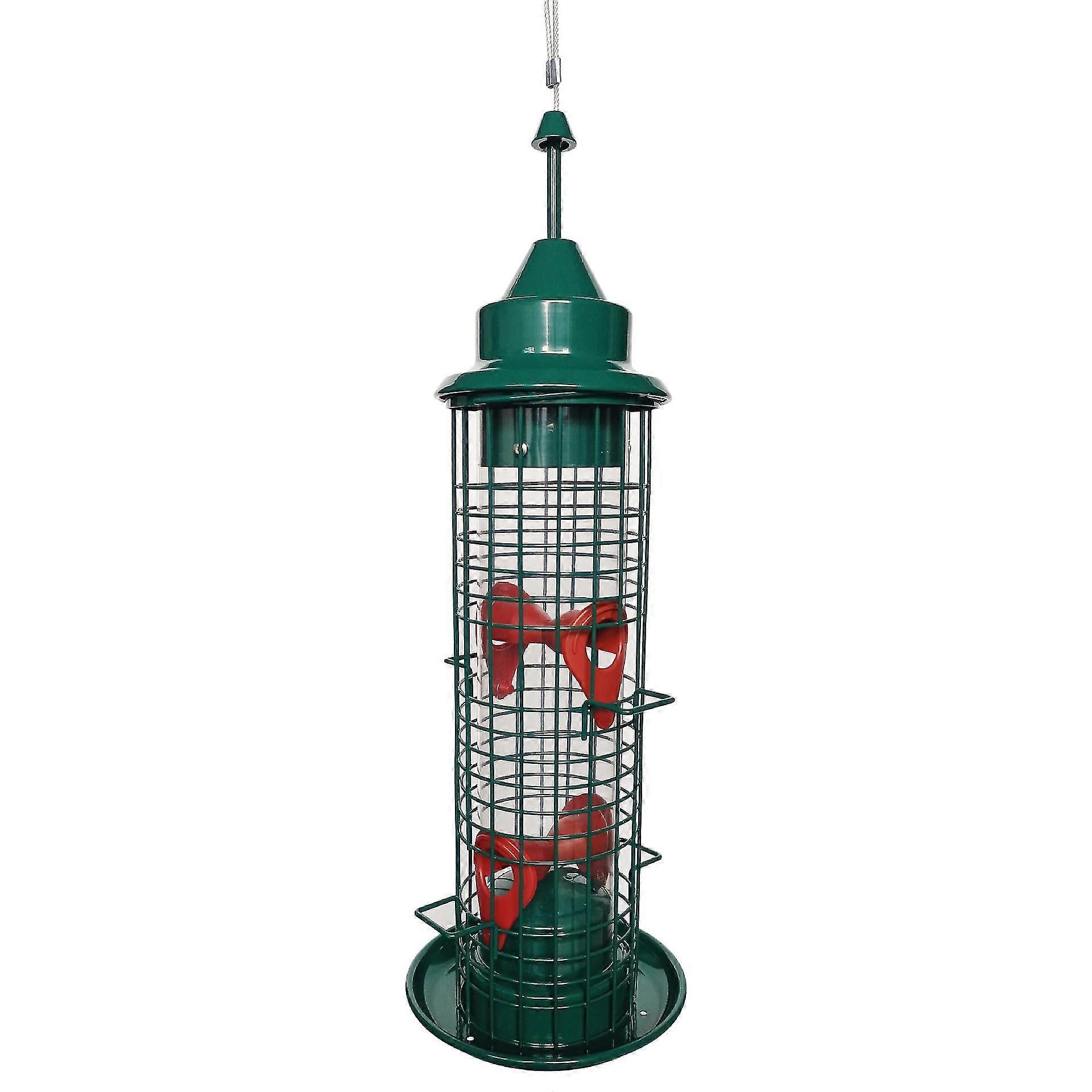 Yaju Green Caged Tube Bird Feeder Hanging Premium Squirrel Proof Wild Bird Feeder All Metal Cage Polycarbonate Feed Tube With 4 Feeding Ports For Out
