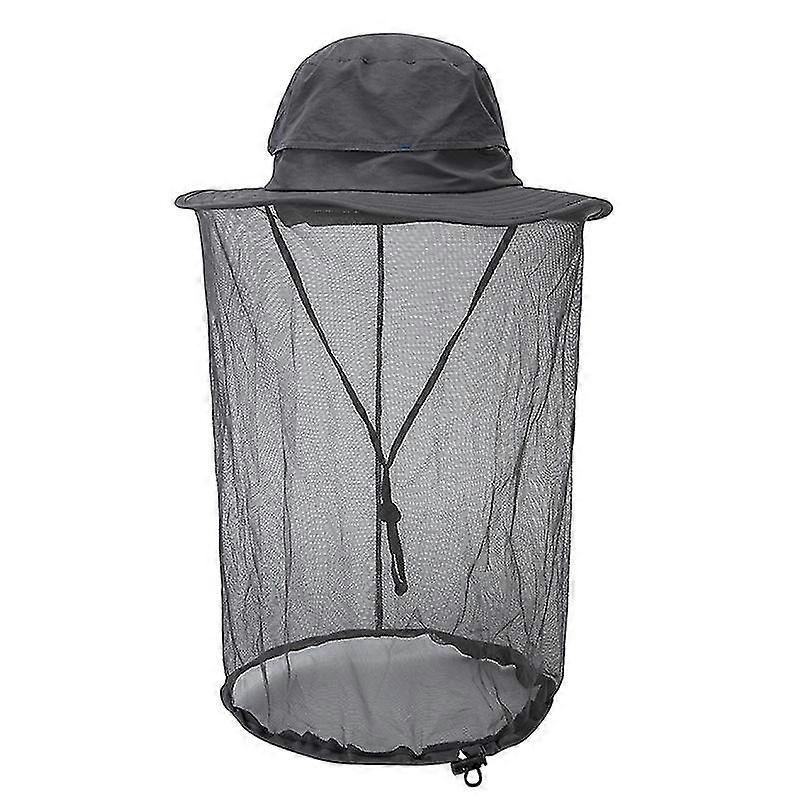 Yaju Outdoor Fishing Camping Anti-mosquito Net Gauze Protective Sun Hat1pcs-grey