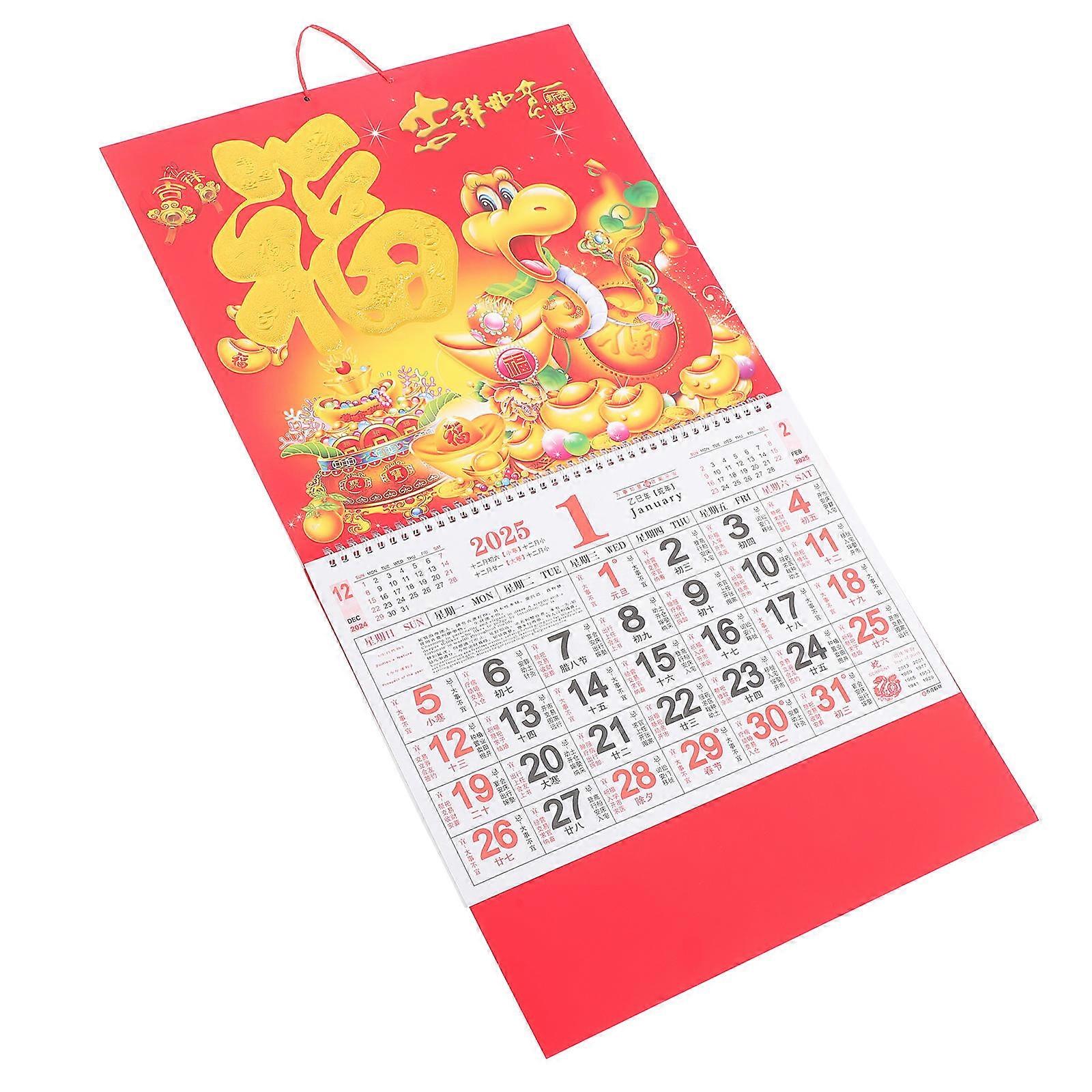 Year Of Snake Hanging Calendar Lunar Date Tracking Decorative Item Rectangular 68.00X36.50X0.50CM 1Set