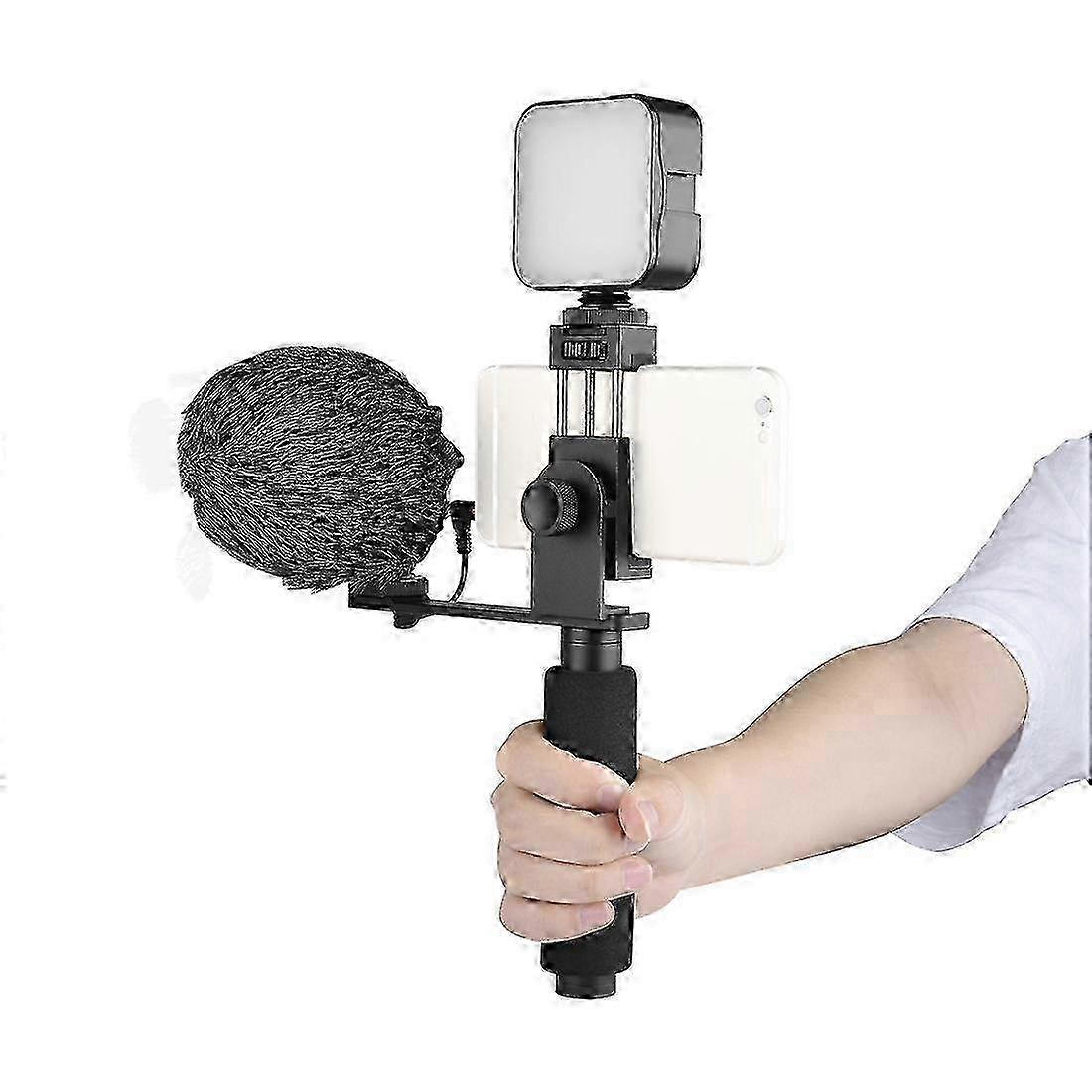 YELANGU PC09 Handheld Grip Holder Bracket + Photography Fill Light + Microphone with Mobile Phone Metal Clamp (Black)