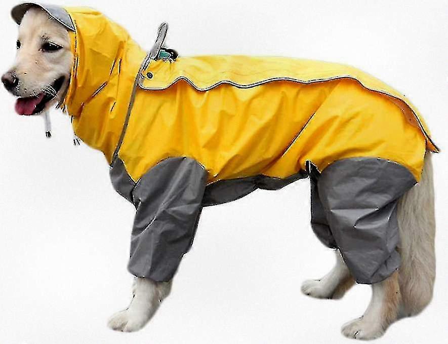 Yellow Waterproof Dog Raincoat with Detachable Hood and Adjustable Drawstring, Lightweight Coat for Small to Large Breeds