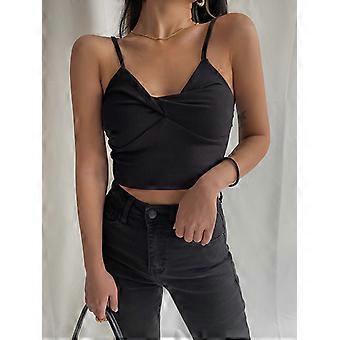 YOUGANG high quality Super Sexy Chest big double layer pleated suspender vest low collar off-shoulder skinny stretchy slimming short top summer