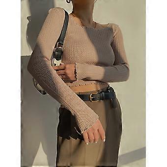 YOUGANG high quality ins super popular chest show sexy off-shoulder secret exam long sleeve base shirt elastic skinny slimming T-shirt disco short top