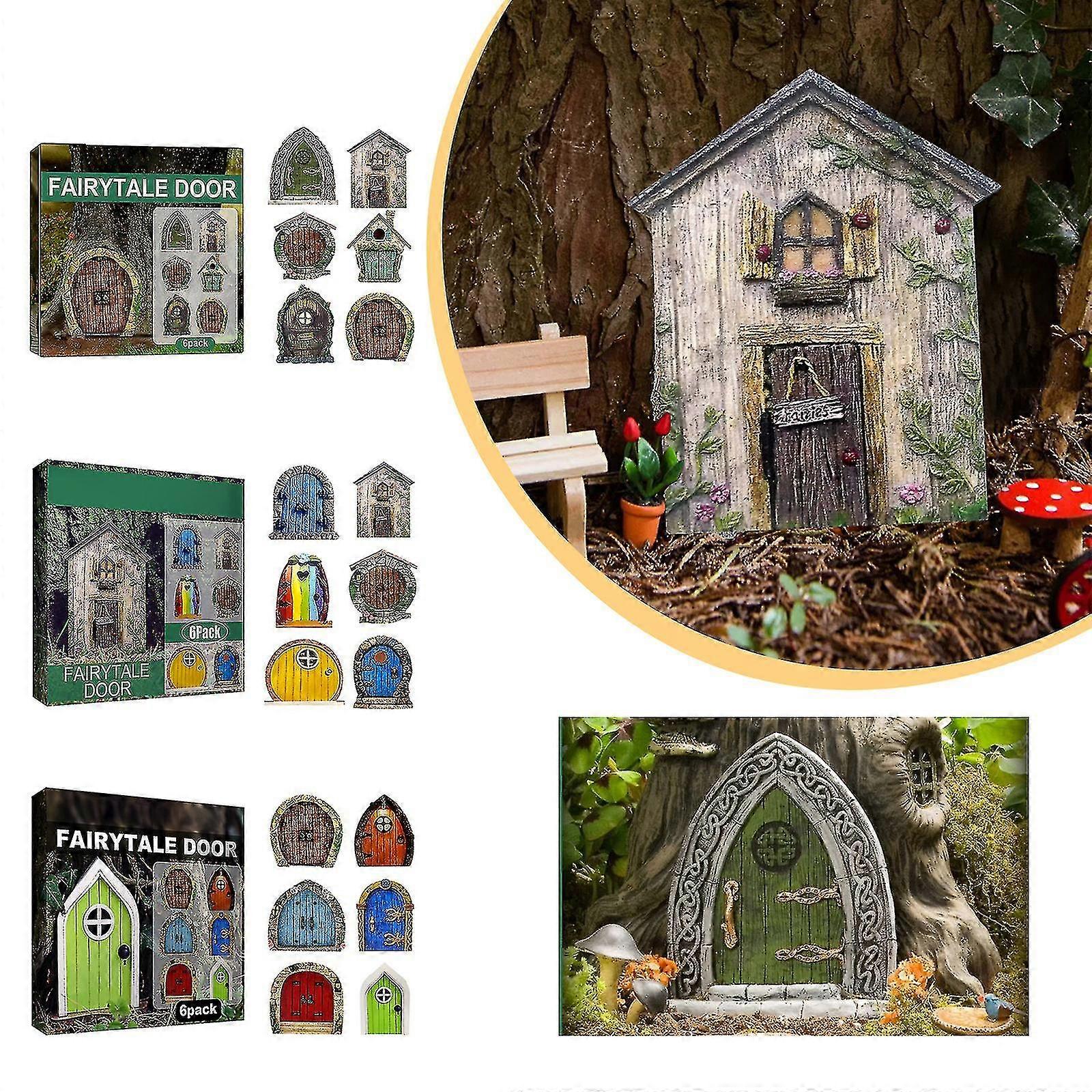 yougangmini Fairy Tale Forest Wooden Door, Fairys Dwarf Tree House Door Garden Decoration Miniatures Home Children's Toys Decoration