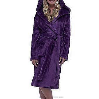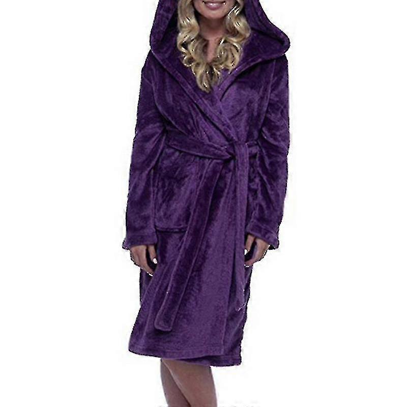 yougangwinter Fleece Bathrobe Women Dressing Gown Hooded Fluffy Towling Bath Robe-9