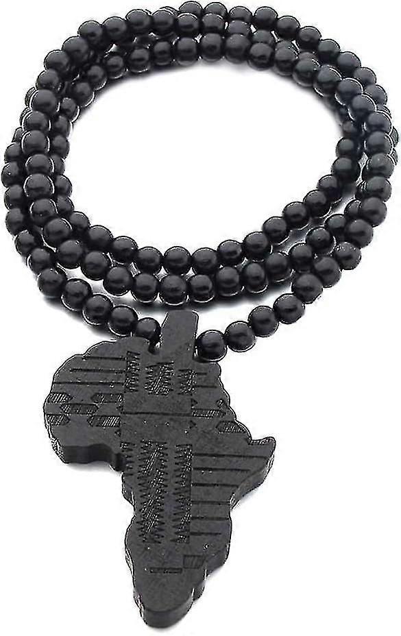Ztexkee Africa Map Pendant Wooden Bead Chain Necklace Hip Hop Rapper Jewelry for Men